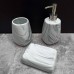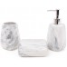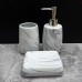 Стильний та функціональний набір аксесуарів для ванної кімнати та кухні, стилізований під сірий мармур.
